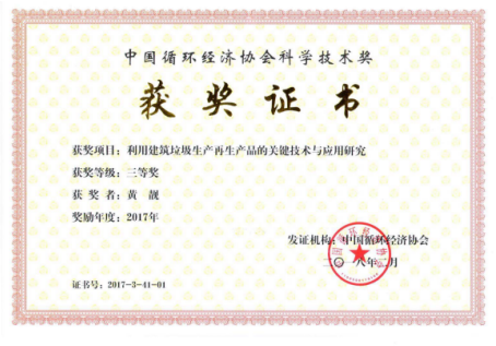 黄靓教授负责完成的《利用建筑垃圾再生产品的关键技术与应用研究》获得了中国循环经济协会科学技术奖三等奖(排名第一),为亚洲偷拍