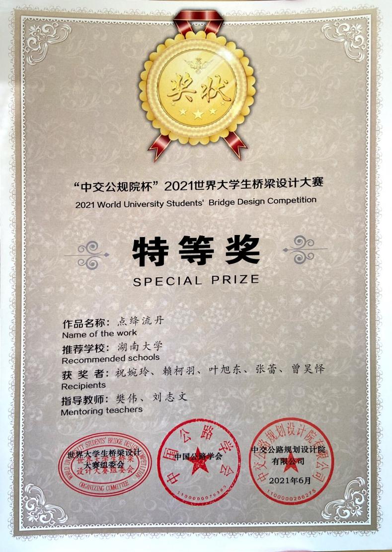 “中交公规院杯”2021世界大学生桥梁设计大赛是中国公路学会与中交公路规划设计院有限公司共同主办的国际赛事,自2017年创办至今已连续举办了四届。大赛旨在引导高等学校培养大学生的创新设计意识、综合设计能力与团队协作精神;加强学生动手能力的培养和工程实践的训练,鼓励学生针对实际需求,通过创新思维进行桥梁设计;吸引、鼓励广大学生踊跃参加课外科技实践活动,为优秀人才脱颖而出创造条件;发现并培养更多的桥梁设计专业人才,为推动世界桥梁建设进步提供更多人才储备。作为2021世界交通运输大会的重点活动之一,经过院校推荐,评审会初审,评审会终审等过程,经过专家学者的严格评审,大赛组委会从57所世界高校提交的200余件作品中遴选10项作品进入终审决赛环节。