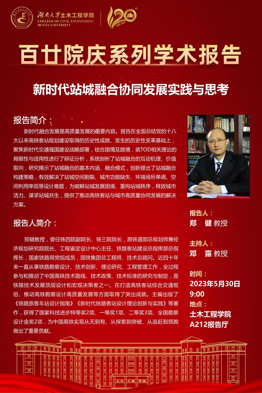 百廿院庆 学术报告|郑健:新时代站城融合协同发展实践与思考