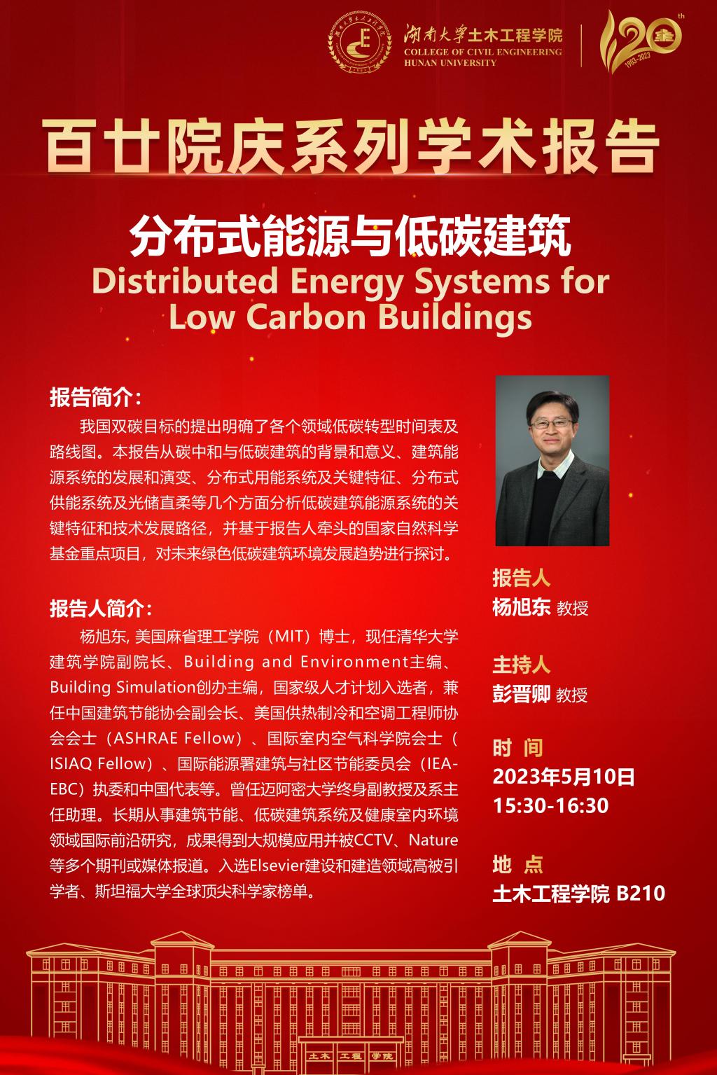 百廿院庆 学术报告|杨旭东:分布式能源与低碳建筑