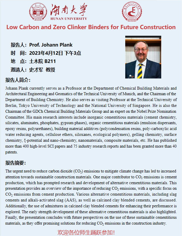 Prof. Johann Plank:Low Carbon and Zero Clinker Binders for Future Construction