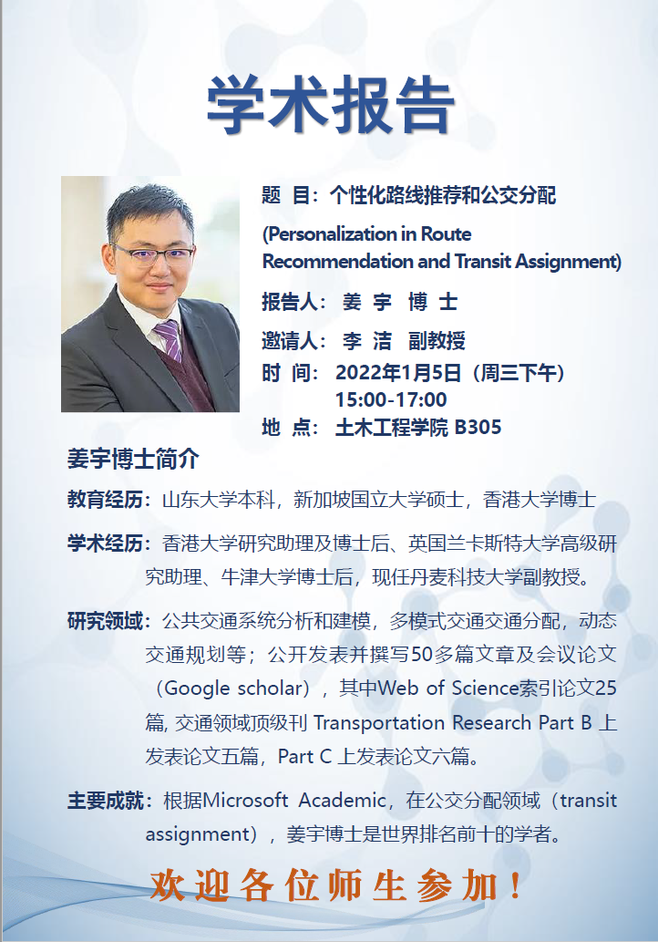 姜宇:个性化路线推荐和公交分配
