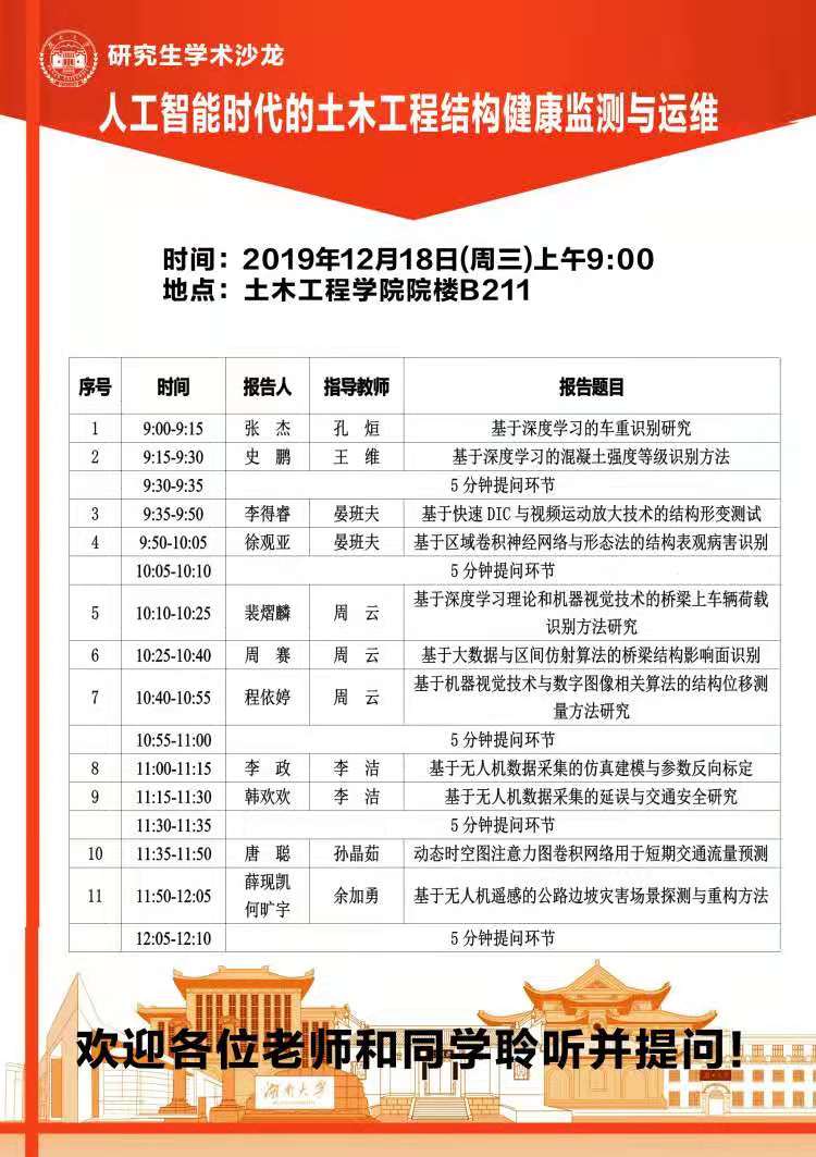 研究生学术沙龙:人工智能时代的土木工程结构健康监测与运维