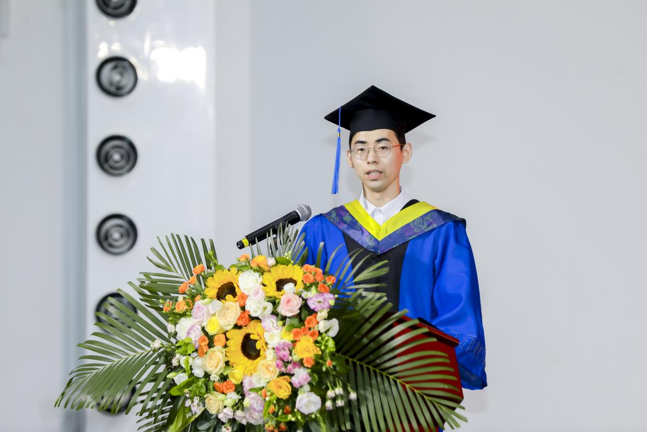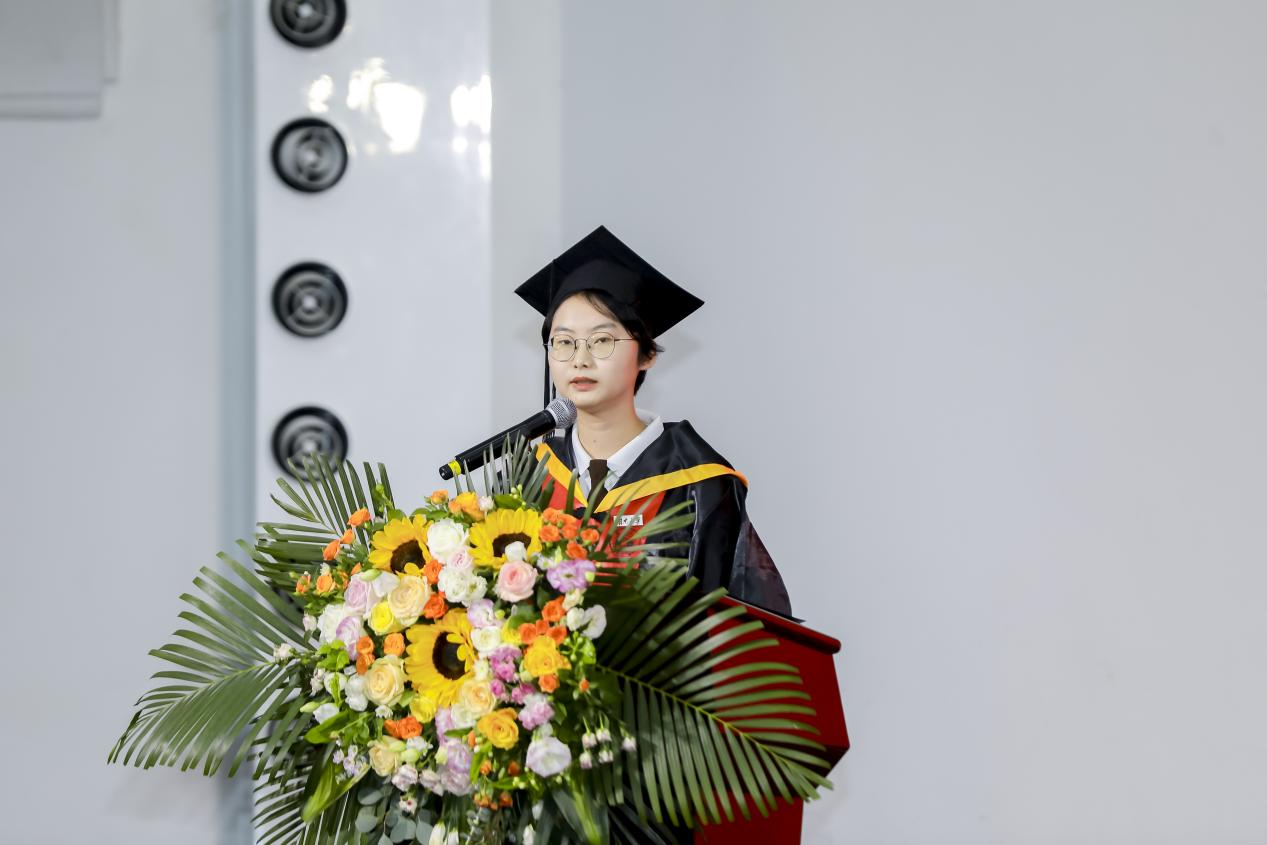 邓露代表学院致辞,向即将离开母校踏上新的人生旅程的2023届毕业生致以最热烈的祝贺和最美好的祝福,向所有为同学们成长辛勤付出的师长、亲人和朋友,致以最崇高的敬意和最衷心的感谢。