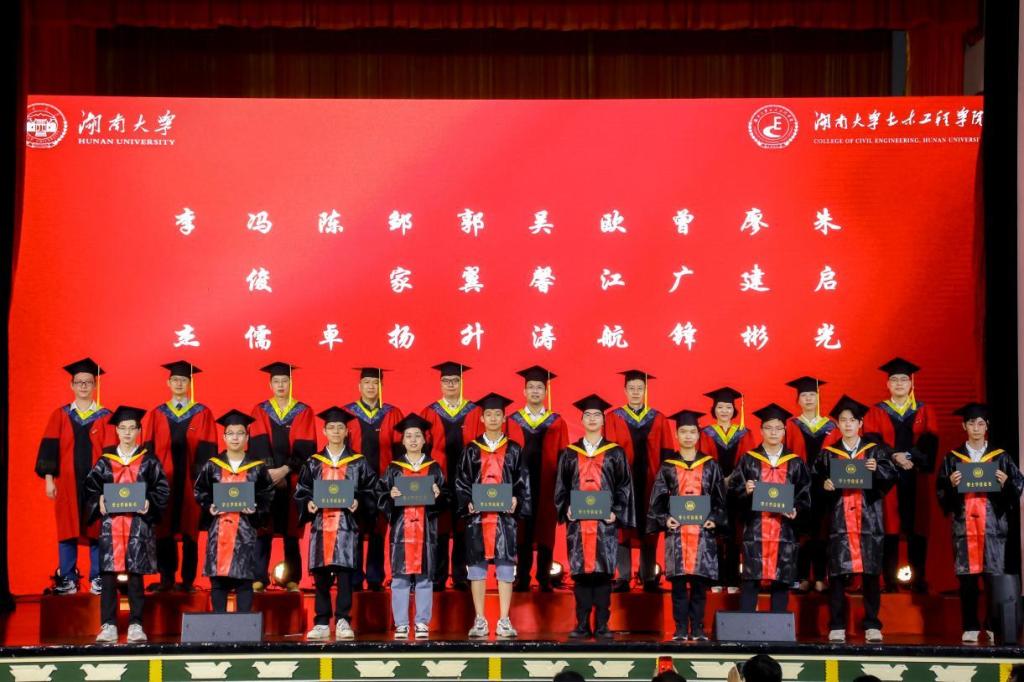 本科生代表西思覃、研究生代表吴海兵先后发言。西思覃表示,作为新一代湖大土木学子,站在毕业的十字路口,无论是继续深造还是投身职场,都将面临新的挑战和未知的风景;不论身处何方,不论前路多么坎坷,要怀揣着一颗勇敢的心去探索、去实践,去创造属于自己的精彩。吴海兵同学表示,生命不息、步伐不止,无论走到何处,都不会忘记那片点燃科研之火,满怀科研热情的湖大土木,因为在这里,有更多的机会去向往、去探索、去追寻无限的可能!