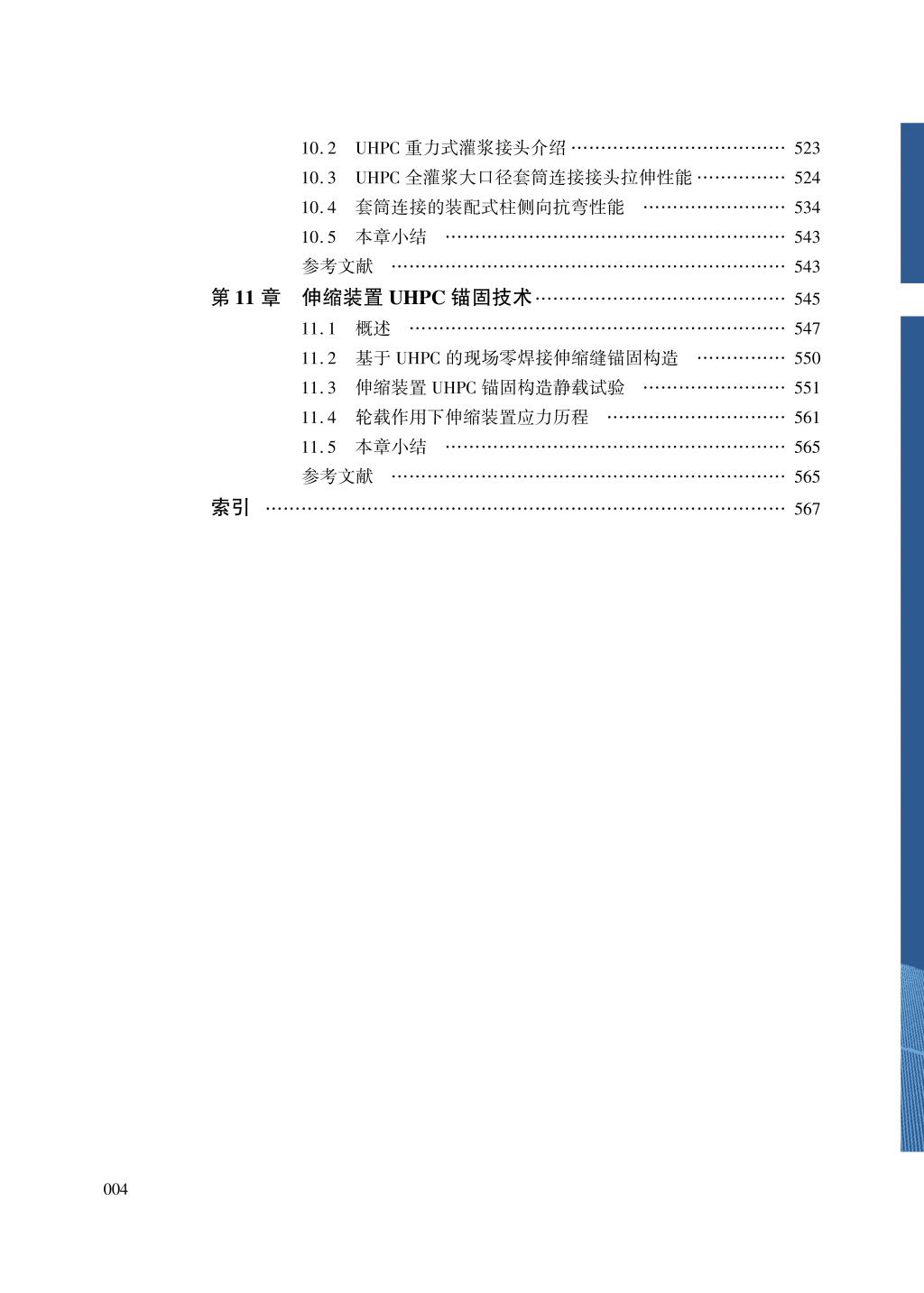 该书主要内容包括超高性能混凝土UHPC介绍;UHPC桥梁设计方法(基于邵旭东教授主编的交通运输部行业标准报批稿);在役开裂钢桥面的加固改造(目标是解决受损正交异性钢桥面板疲劳开裂和沥青铺装破损的难题);多种 UHPC桥面板结构(目标是降低自重、提高抗裂性能、提高耐久性);大跨径单向预应力UHPC箱梁桥(目标是解决传统大跨径预应力箱梁桥自重大、易开裂的难题);多种中小跨径装配式梁桥(目标是降低自重和造价、实现快速化施工、提高耐久性);特大跨径拱桥新体系(目标是建造跨径600m以上低碳高性能拱桥);混凝土桥面加固(目标是消除在役混凝土桥面病害);负弯矩区UHPC接缝(目标是简化施工,提高耐久性);UHPC灌浆接头(目标是简化施工,提高牢固性);伸缩装置UHPC锚固技术(目标是简化施工,提高抗车辆冲击性能)等。