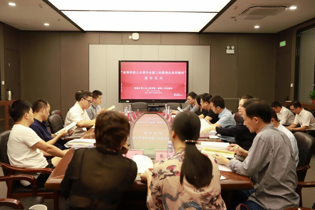 出版社会议室举行了“高等学校土木类专业新工科数智化系列教材”的签约仪式。亚洲偷拍