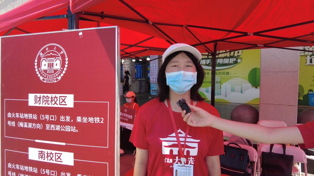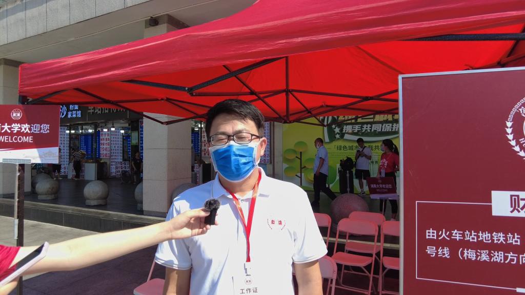 新生接受了志愿者们的采访:“站点迎新的志愿者非常热情,在帮助我搬行李的过程中还一直与我分享湖大历史和故事。而且因为我之前也从事过相关的活动所以我知道志愿者们是很辛苦的,也非常感谢他们愿意在这样炎热的天气来帮助我。”