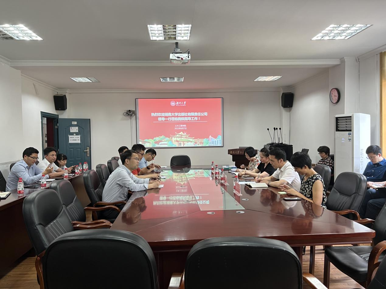 合作交流会在学院B211会议室召开,共同商讨“新工科数智化土木系列教材”出版工作。出版社社长李文邦、总编室主任陈建华、编审卢宇、编辑张佳佳,学院党委书记彭晋卿、副院长周云、各专业教师代表参加座谈会。会议由周云主持。