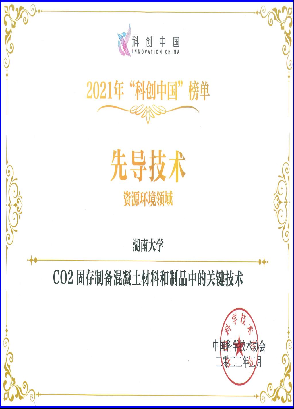 史才军教授课题组的“CO2固存制备混凝土材料和制品中的关键技术”科研成果入选资源环境领域的“先导技术榜”。