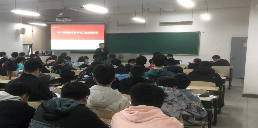 3月4日,给水专业三个班开展联合班会,由学院施周教授和优秀毕业生许光眉博士分享本专业的学习、工作经历,进一步强化专业认知与生涯规划。