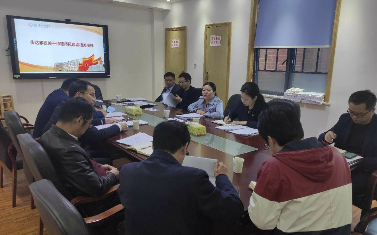 为了进一步规范教师履职履责行为,落实立德树人根本任务,加强学院师德师风建设工作。11月10日下午,学院在院楼A206会议室举行教师师德师风工作专题学习会议,邀请校党委教师工作部副部长、人力资源处副处长鲁阿庆作师德师风建设工作专题指导。会议由党委书记彭嘉芬主持,学院党政班子、党委委员参加会议。