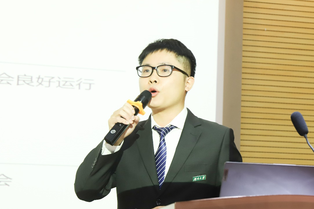 研究生会主席团成员王文赞汇报