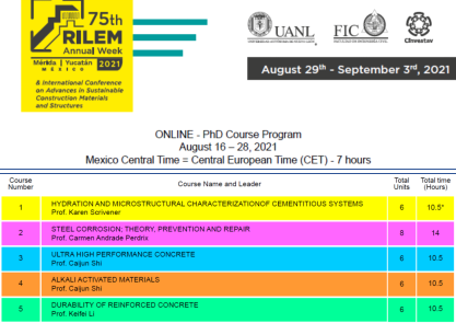 8月16-28日,国际材料与结构研究实验联合会(RILEM)的第75届秋季年会由墨西哥新莱昂自治大学(Universidad Autonoma de Nuevo León)通过线上方式承办,RILEM在每次的年会上开设一些国际博士生课程,让博士生和有兴趣的科研人员共享一些大家关注领域的知识和研究成果。本届会议设立了5门博士课程,亚洲偷拍
