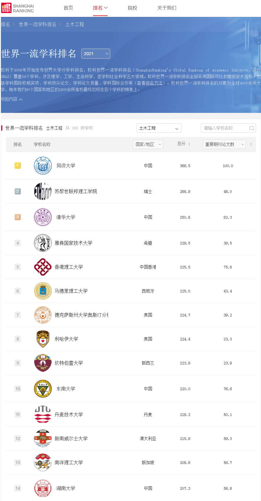 近日,上海软科正式发布软科世界一流学科排名(ShanghaiRanking's Global Ranking of Academic Subjects),亚洲偷拍 土木工程学科的排名持续上升,2021年位列世界第14位,中国内地高校第4位。