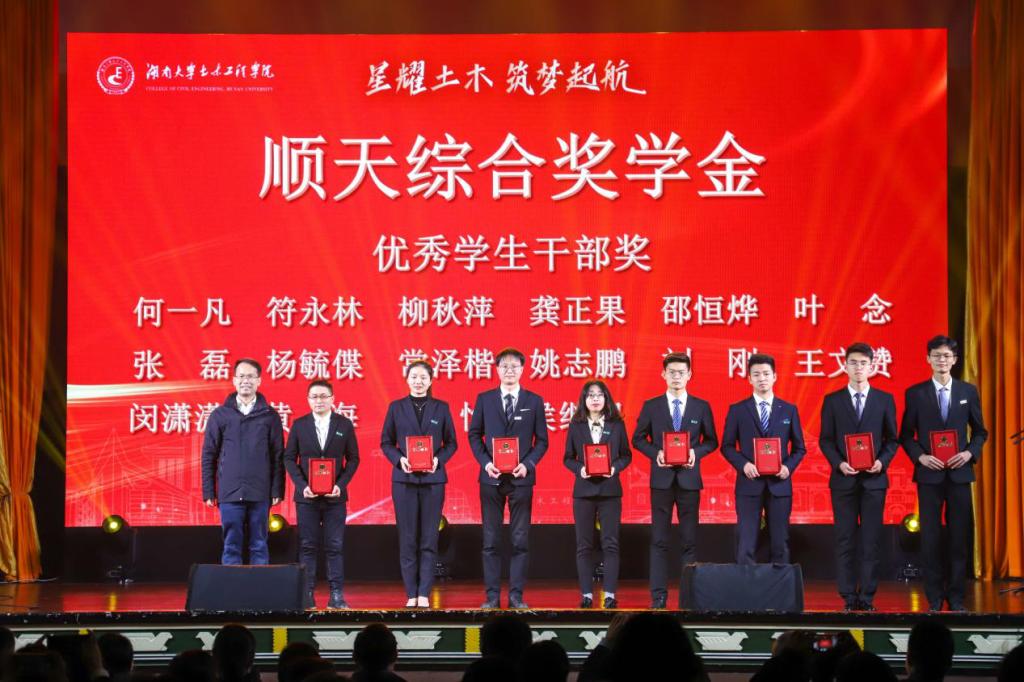 典礼上共表彰了165名优秀个人和11个优秀集体,设奖单位代表及校院领导老师为“肖春源奖助学金”、“皓芬奖学金”、“杨运传奖助学金”、“78级公路校友奖学金”、“83级校友奖助学金”、“九二级校友奖学金”、“廖宏奖学金”、“98级建筑工程专业校友奖助学金”、“工民建专业89级奖助学金”、“暖通基金”、“修邦代建奖学金”、“顺天综合奖学金”等12个奖项的获奖学生分别颁奖,并为本年度有突出表现的个人佩戴绶带。