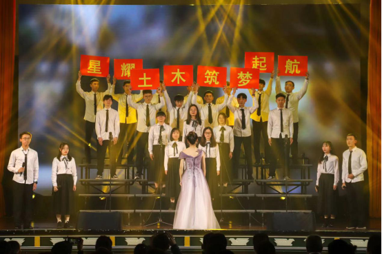 迎新晚会歌曲串烧《唱给青春的歌》、民族舞《舞韵民风》、独创舞台剧目《山》、乐器合奏《芒种》、朗诵《那一刻,我看见》等节目精彩纷呈,展现出土木学子们的青春活力与精神面貌。典礼在全场合唱《最初的梦想》的歌声中落下帷幕。