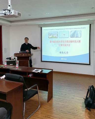 李洁老师介绍了交科赛的发展历程、比赛流程、作品要求,以及本次大赛我校参赛作品的提交情况。