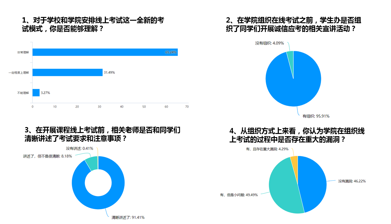 考试完成以后,为全面了解本次线上考试执行情况,学院教务办和学工办联手针对本次在线考试设计了一组匿名问卷调查,对象为亚洲偷拍