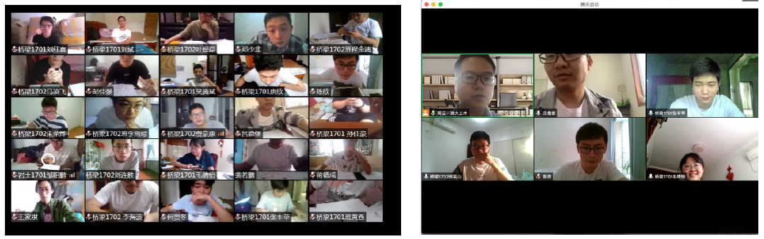 自此,在顺利完成这场考试之后,各门课程考试按照考试安排表有序开展......6月29日,建工系张望喜教授在《混凝土及砌体房屋结构设计》考试前,将1703、1704班分为了三个临时班,防止软件卡顿和信号异常等,为了让学生适应网络考试对考试过程做了一次预演,提前5分钟发放试卷避免占用学生作答时间。考试前3天,他还把专用答题纸文档发给学生,让有条件的学生提前打印好,在专用答题纸上作答,答题完成后,由学生拍照或扫描制作成PDF文件上传到提前告知的专用邮箱。要求学生打开视频并闭音频,并按要求调整好摄像头位置和角度,保证监控画面可以看到学生的作答纸面。试卷通过“腾讯视频”上的共享文档发放,并同步“QQ授课群”内发放,每位学生可按自己最合适的方式获取和使用试卷。考试过程中提醒学生剩余时间2次。考试时间到,提醒学生最后检查学号姓名,并按照提前演练过的方法制作PDF提交。