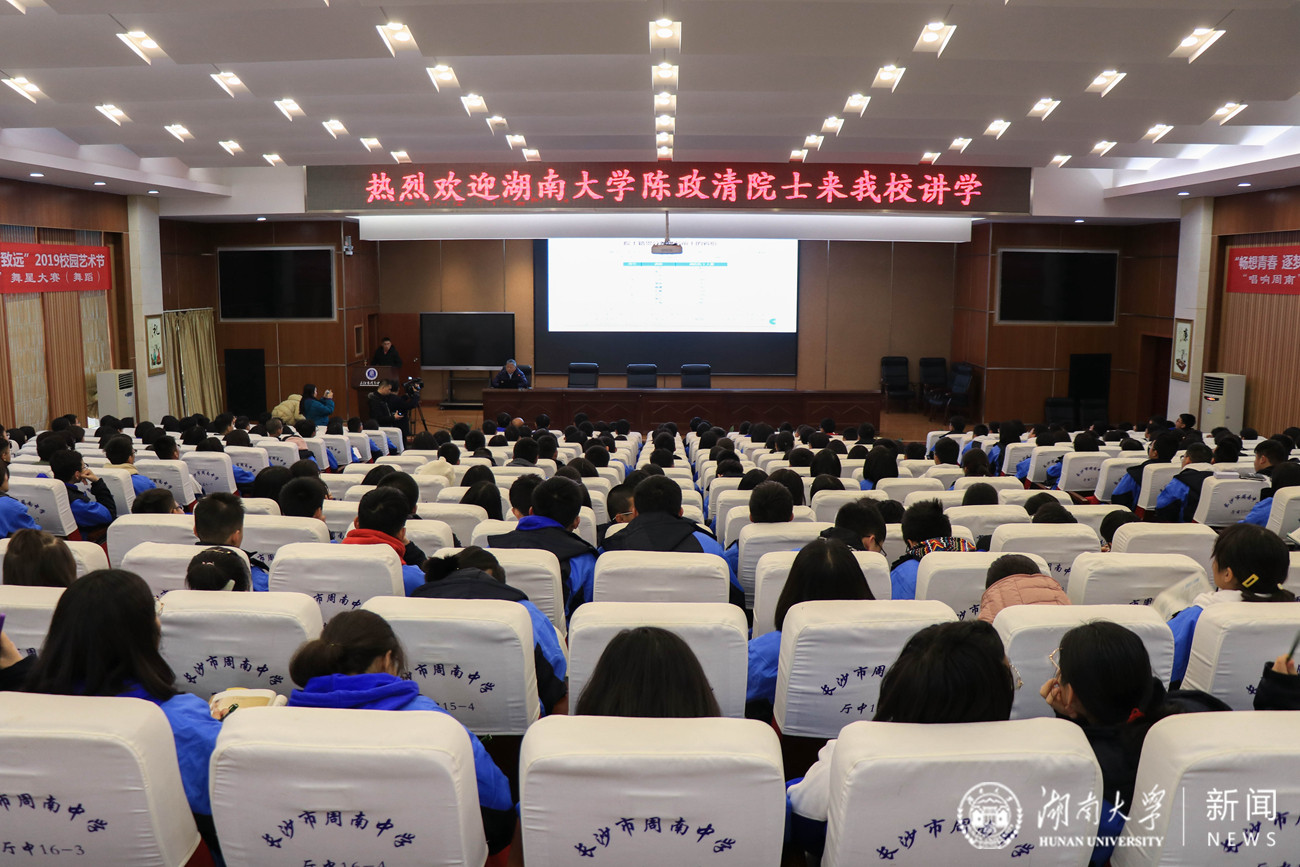 教授陈政清走进周南中学,为500余名高一学生作主题为《科技创新》的讲座。