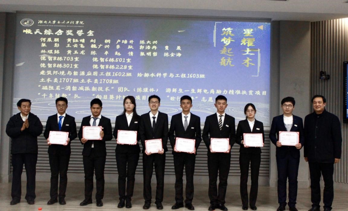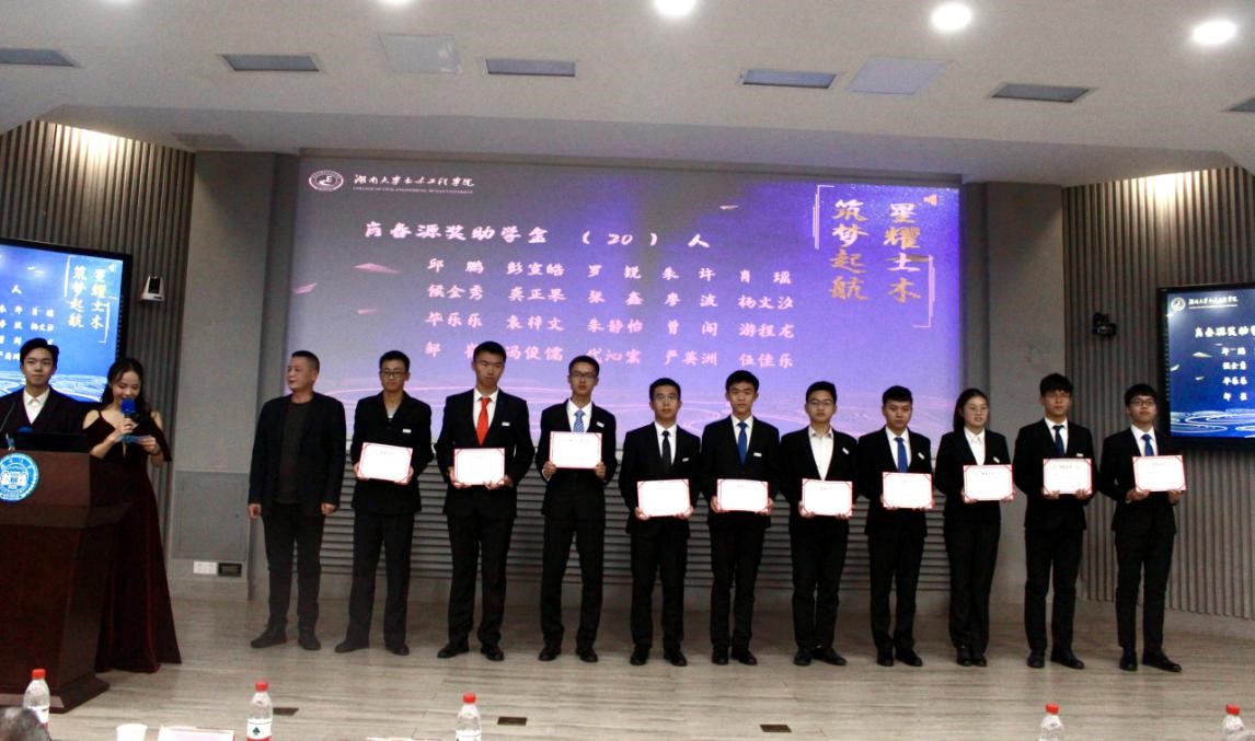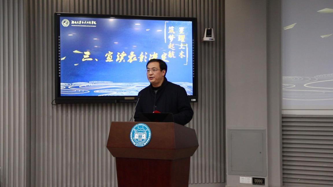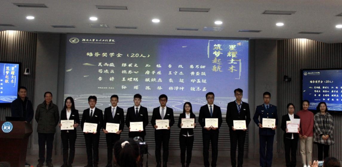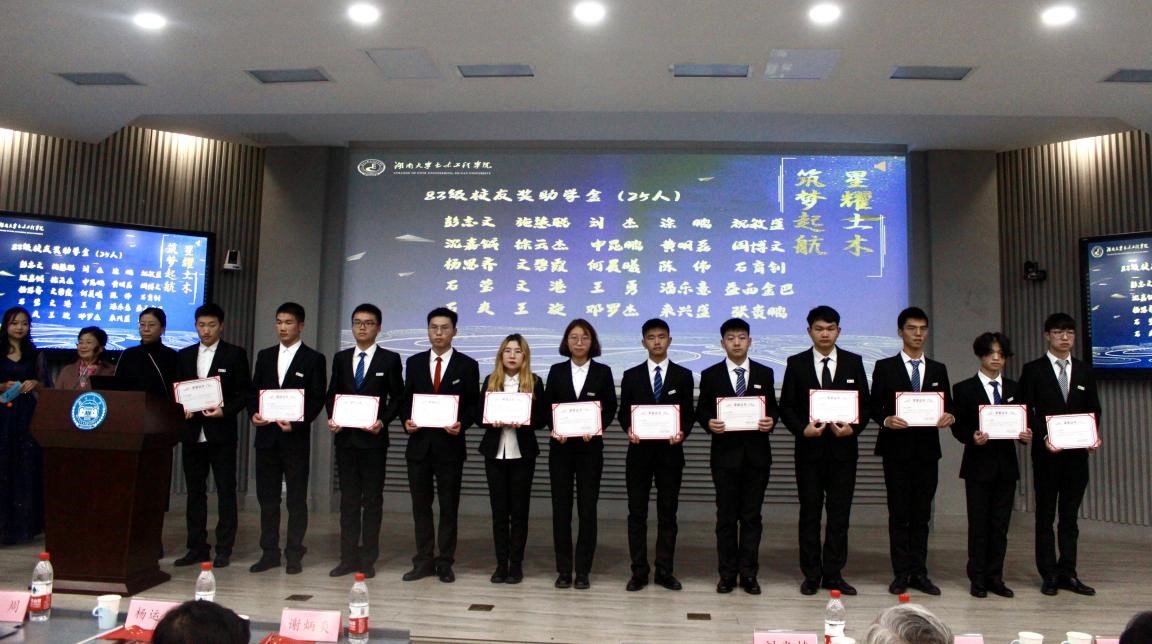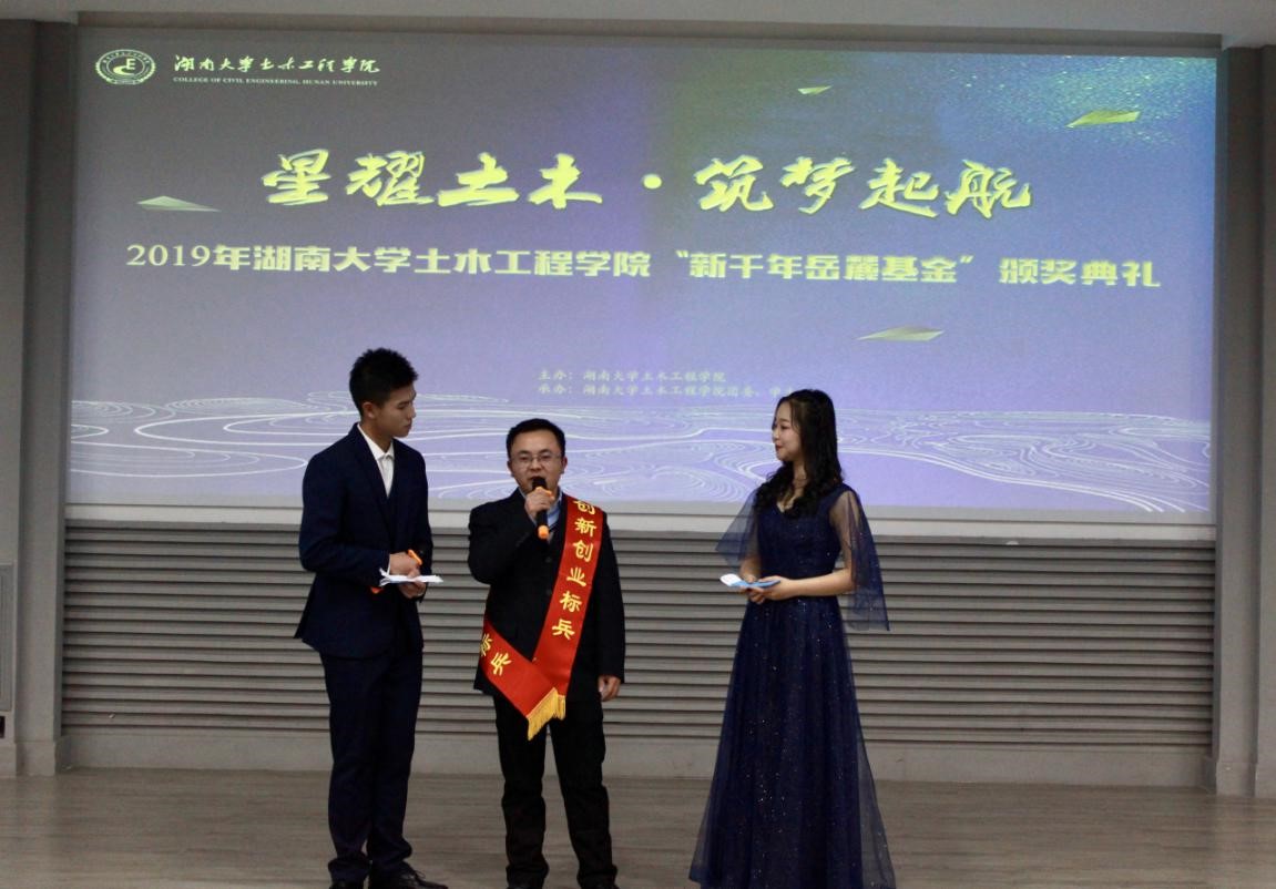 颜李代表“新千年岳麓基金”评定委员会宣读表彰决定。此次表彰共158个个人和13个集体分别获得“新千年岳麓基金”的皓芬奖学金等11项奖助学金。希望土木学子团结奋进新征程,携手奋斗新时代,再续新辉煌。
