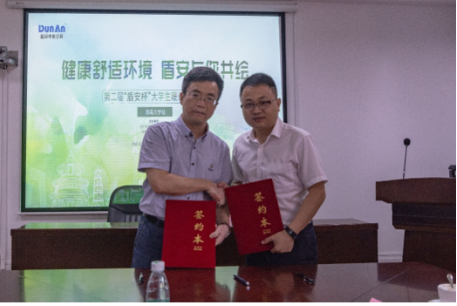 最后,张泉教授和周诒旋总经理就2020年第三届“盾安杯”大学生暖通设计大赛达成了合作协议,并一同合影留念。