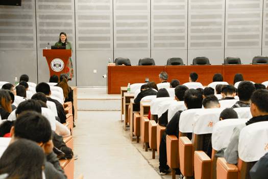 “生命是用来折腾的,越折腾越活得明白。”从父母和老师眼中的好孩子、好学生,到破釜沉舟留学新西兰、新加坡,再到回国创业,魏玛丽老师在分享自己成长过程的同时,也启发同学们,只有不断地认识自己的能力,才能更好地管理自己的能力。玛丽老师用她极具亲和力的讲解向大家展现了她的人格魅力,深深地吸引了大家。
