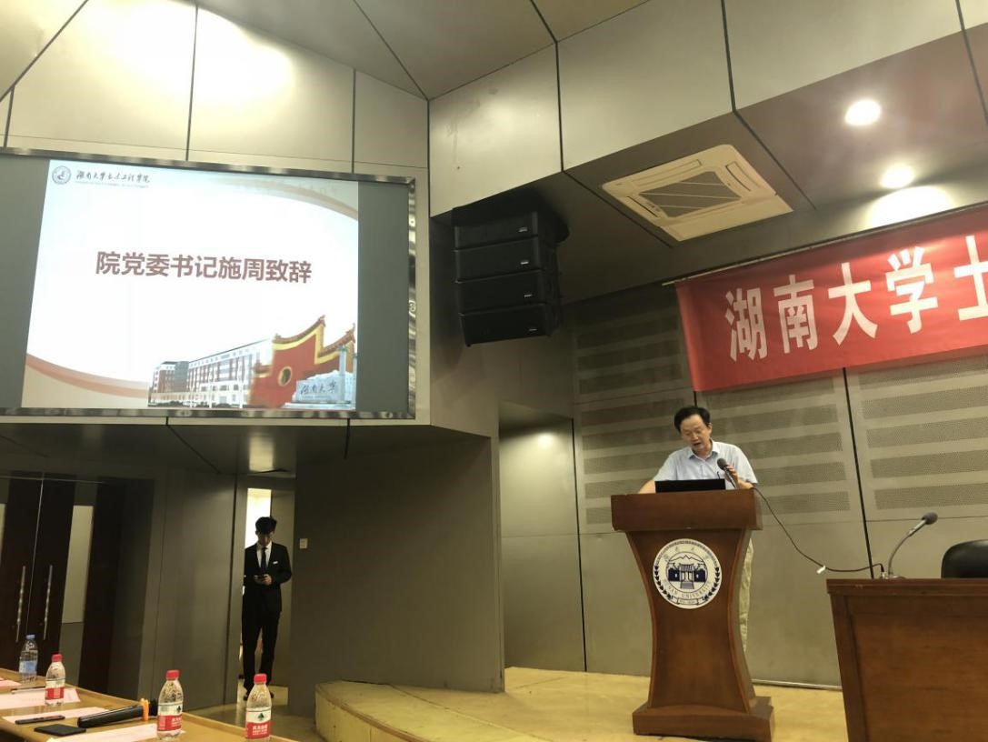 在学院领导致辞中,施周教授带领大家一起回顾了千年湖大、百年土木的辉煌历史,提出了对新生们的殷切希望,令在座的土木新生对学院的自豪感油然而生。