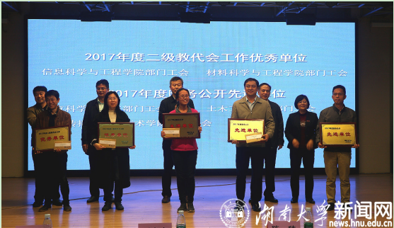 也涌现出大批工会先进工作者,其中:部门工会委员罗宏老师荣获“优秀工会工作者”称号;杨明辉、王征、李洪强、谭鑫、莫志娇、饶明、易笃韬、周铁英、蓝青、张阳10位老师荣获“工会活动积极分子”称号。