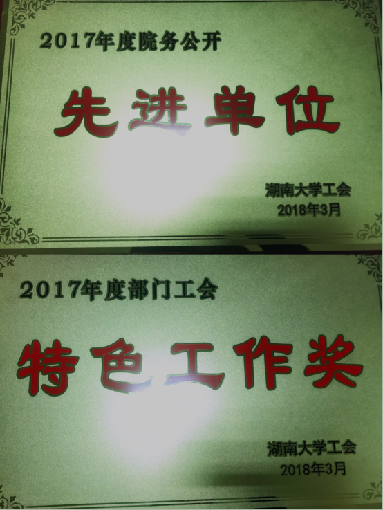 积极贯彻学校的相关政策,认真学习贯彻“十九大”精神,积极助力“双一流”建设 ,工作圆满完成,取得喜人成果:学院喜获“2017年度院务公开先进单位”(全校3个),“以悦读咖啡吧为平台,促进师生交流成长”特色工作项目获“2017年度部门工会特色工作奖”(全校3个)。同时亚洲偷拍