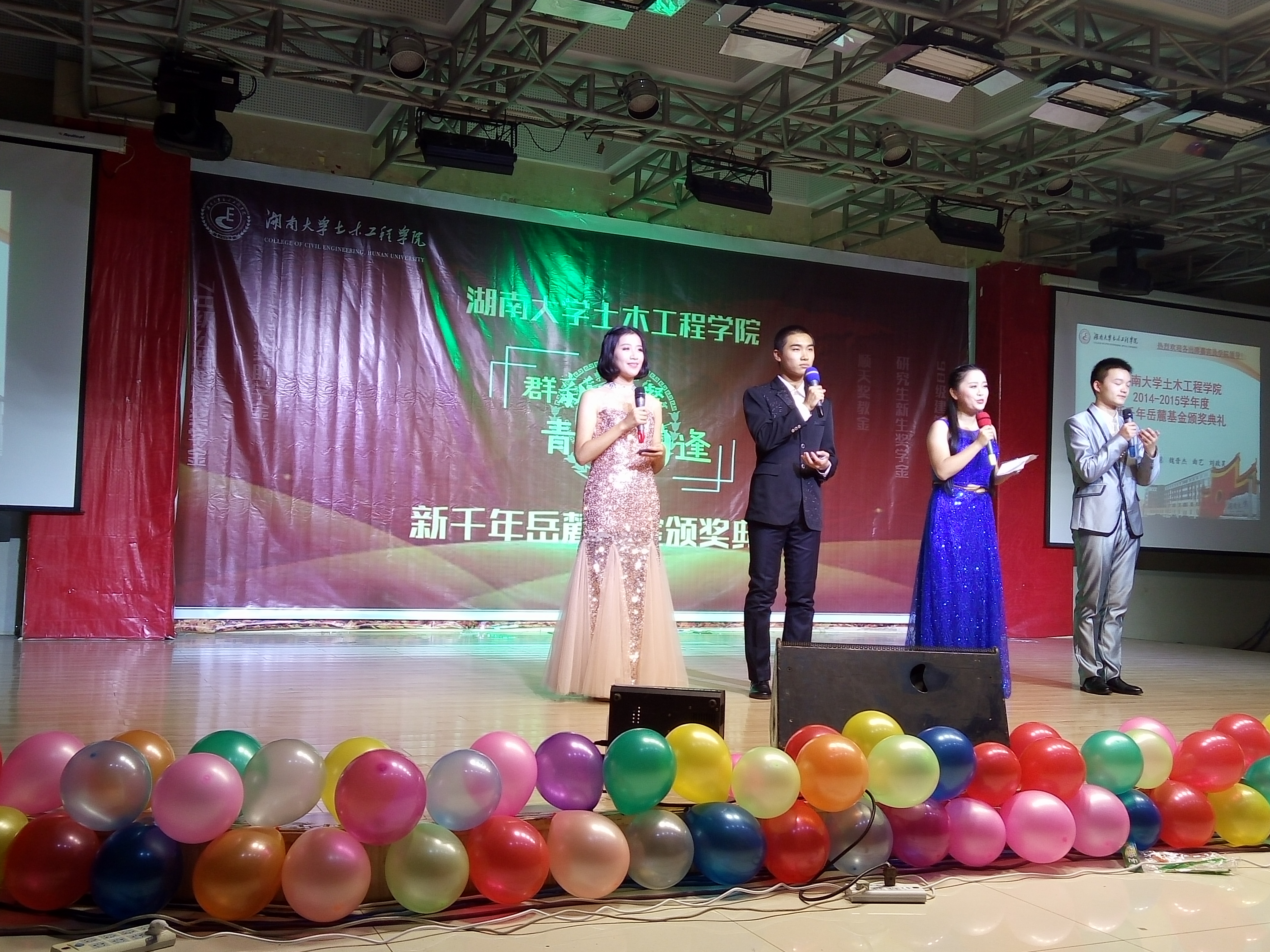举办了以“群星璀璨,青春湘逢”为主题的2014-2015学年度新千年岳麓基金颁奖典礼在校工会活动中心举行。出席此次颁奖典礼的嘉宾有肖春源奖助金设奖代表长沙鹿回头集团技术总监余开华先生,78级公路专业校友奖学金设奖代表李嘉女士,98级建筑工程专业校友奖助学金设奖代表周云先生,亚洲偷拍