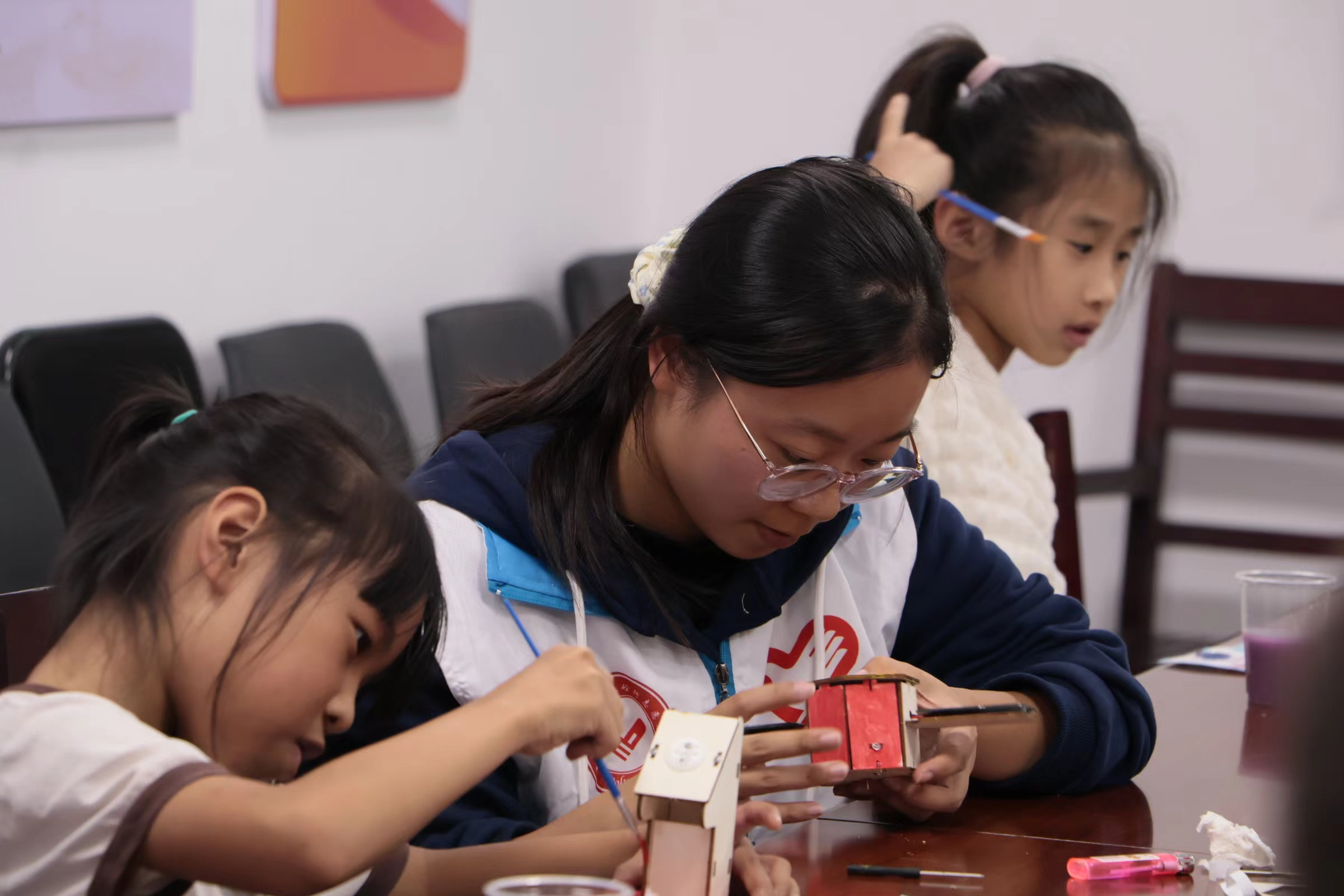 在八字墙社区,志愿者指导孩子们搭建起了象征科技探索的人造卫星模型。这一过程不仅锻炼了孩子们的手眼协调能力和空间想象力,更让他们在实践中体验到了科技探索的乐趣与成就感。