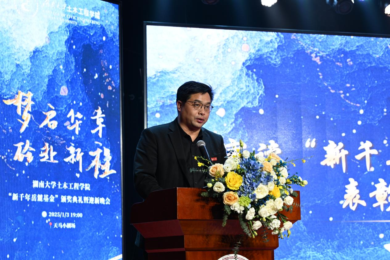 教育基金会理事长陈伟先后致辞,表示在土木的文化中,从一开始就注入了奋斗爱国、科教兴国、贡献报国的使命和情怀;学院的发展离不开全院师生的不懈奋进和校友的深情厚谊;勉励每一位土木学子都能胸怀祖国,继承和弘扬百廿土木铸就的土木风骨,把个人的梦想汇入到时代的奔腾洪流之中,共同书写中华民族伟大复兴的新篇章。学院党委书记刘文宣读表彰决定,对于获奖的个人和集体表示祝贺。