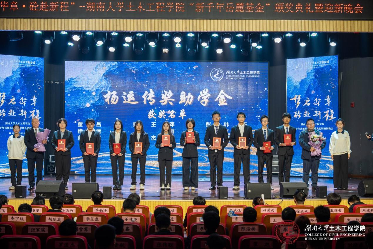 校友、企业等用人单位募捐设立,涵盖12项奖助学金,最早设立的奖助学金已有28年之久。“新千年岳麓基金”每年颁发一次,持续灌溉土木学子的梦想之田,至今已有千余名同学获得奖励和资助。