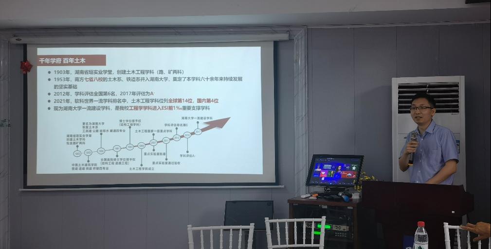 首先,湖大建设监理公司董事长、法人代表兼支部书记姜早龙发言,他回顾了监理公司的发展历程,介绍了公司近况,他再三强调虽然监理公司去年完成了改制,归属于学校经营资产公司,但公司的根基仍然在土木学院,学院是监理公司发展和壮大的坚强后盾。随后赶来的金波老师对老同志们进行了祝福慰问。