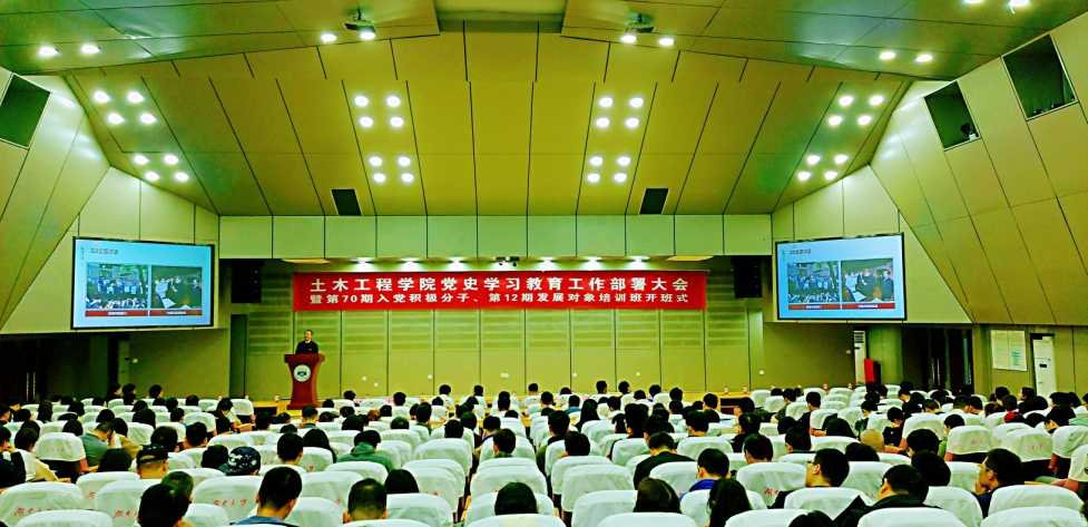 党史学习教育工作部署大会暨第70期入党积极分子、第12期发展对象培训班开班式在逸夫楼报告厅举行。校党史学习教育领导小组办公室主任、党委常委、宣传部部长、马克思主义学院院长唐珍名作专题辅导报告。学校党史学习教育第七巡回指导组组长、离退休处党委书记吴清风出席会议并讲话。院党委书记彭嘉芬主持。巡回指导组成员、校纪委监察处副处长李海滔,巡回指导组联络员、党委组织部正科级组织员晏伟,党校正科级组织员靳琳以及学院党政领导班子、党支部书记、支部委员、离退休党支部代表、师生党员代表、第70期入党积极分子、第12期发展对象400余人参加会议。