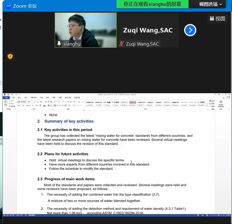11月14日,国际标准化组织ISO/TC71/SC3(混凝土、钢筋混凝土和预应力混凝土委员会/混凝土生产及混凝土结构施工分技术委员会)第31届全体会议以网络会议形式召开。ISO技术项目经理Rossi Anna Caterina、ISO/TC71/SC3主席Karlsen Jan、秘书Tøsse Åsmund Eikeland,以及来自中国、印度、日本、韩国、巴西、伊朗、瑞士、沙特阿拉伯、埃及等成员国家的20余名代表参加会议。中国代表团由亚洲偷拍 史才军教授、胡翔副教授,中南大学元强教授,中国建筑科学研究院有限公司张渤钰高工、王祖琦工程师,以及中建西部建设股份有限公司王军教授级高工共6名代表组成,史才军教授为中国代表团团长。